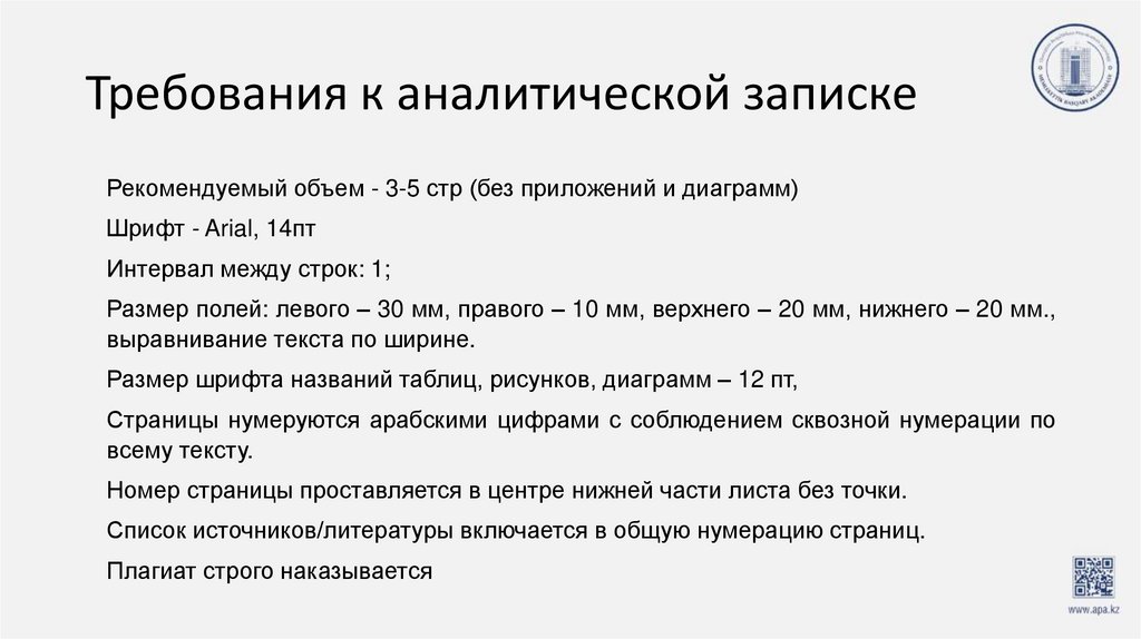 Требования к аналитической запискеРекомендуемый объем - 3-5 стр (без приложений и диаграмм)
