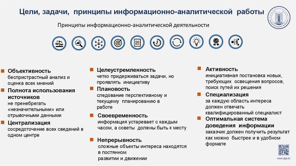 Цели, задачи, принципы информационно-аналитической работыПринципы информационно-аналитической деятельности