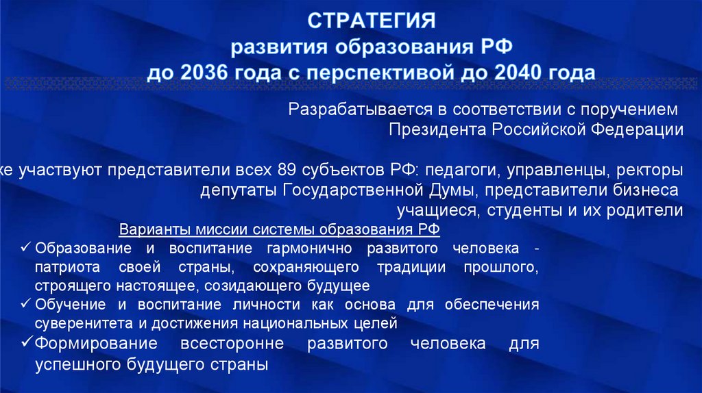 Разрабатывается в соответствии с поручениемПрезидента Российской Федерации