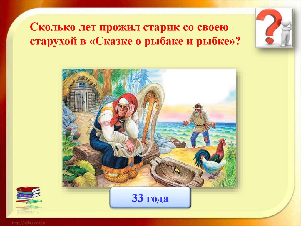 Сколько лет прожил старик со своеюстарухой в «Сказке о рыбаке и рыбке»?