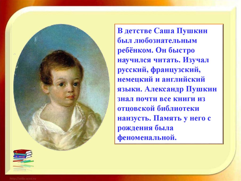 В детстве Саша Пушкинбыл любознательным