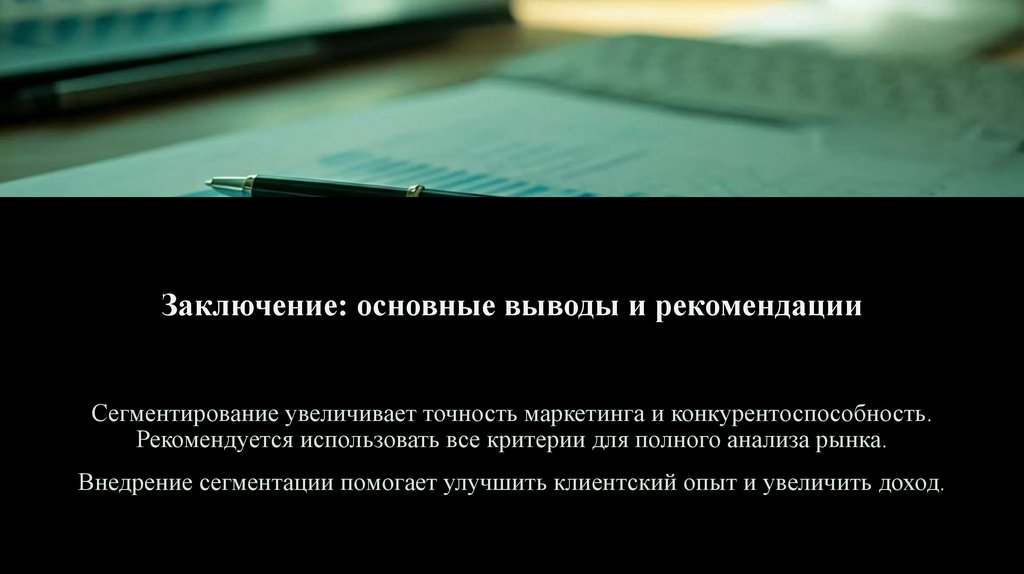 Заключение: основные выводы и рекомендацииСегментирование увеличивает точность маркетинга и конкурентоспособность.