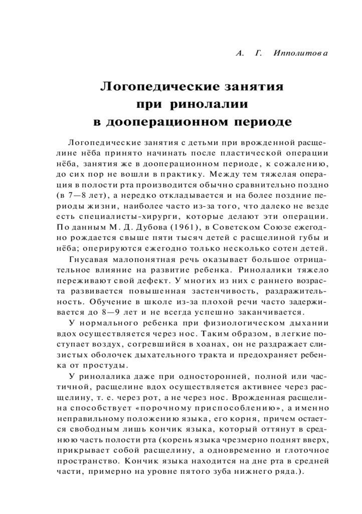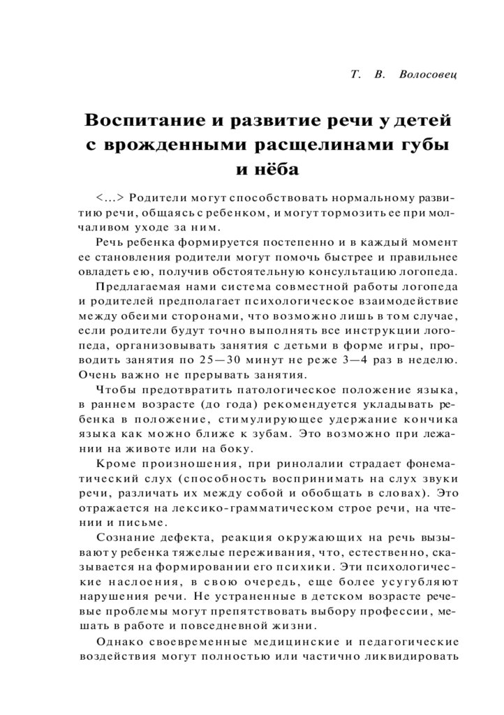 Воспитание и развитие речи у детей с врожденными расщелинами