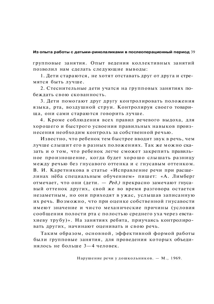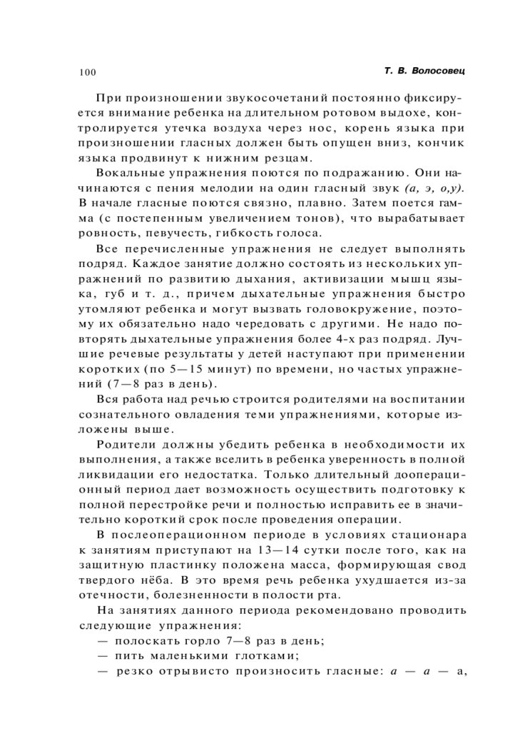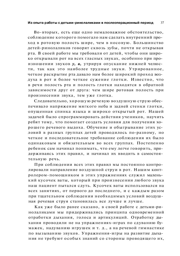 Из опыта работы с детьми-ринолаликами в послеоперационный