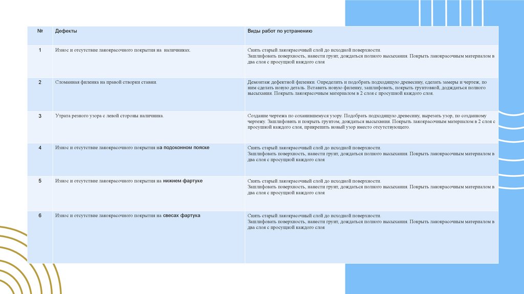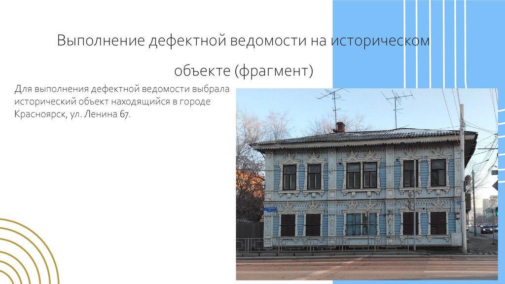 Выполнение дефектной ведомости на историческом объекте (фрагмент)