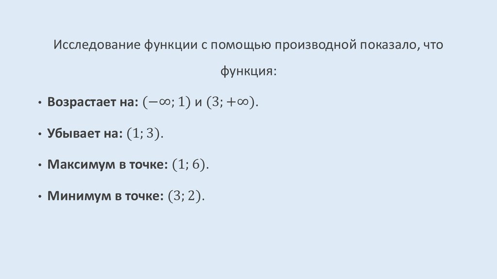Исследование функции на монотонность и экстремумы функции с помощью производной