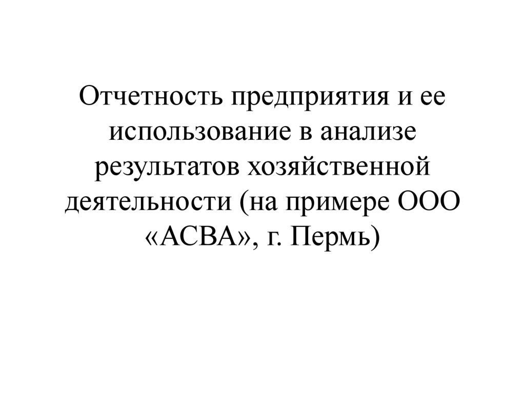 1. Отчетность предприятия и ее использование в анализе результатов хозяйственной деятельности (на примере ООО «АСВА», г. Пермь)