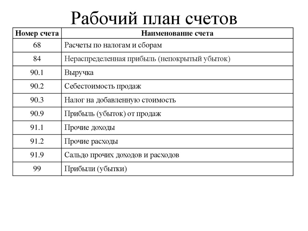 Рабочий план п.8 и п.9 Положения по ведению Рабочий план счетов