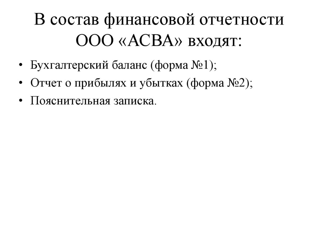 8. В состав финансовой отчетности ООО «АСВА» входят: