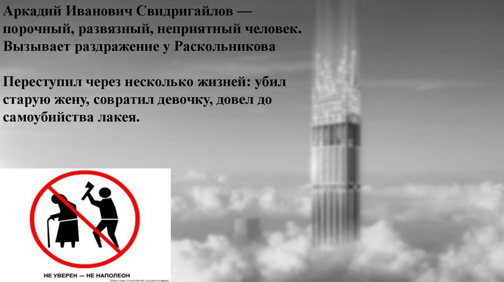 Аркадий Иванович Свидригайлов —порочный, развязный, неприятный человек.