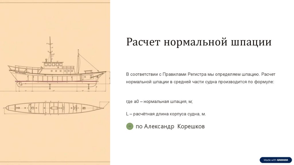 Расчет нормальной шпацииВ соответствии с Правилами Регистра мы определяем шпацию. Расчет