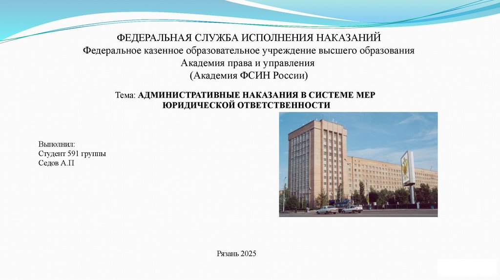 ФЕДЕРАЛЬНАЯ СЛУЖБА ИСПОЛНЕНИЯ НАКАЗАНИЙФедеральное казенное образовательное учреждение высшего образования