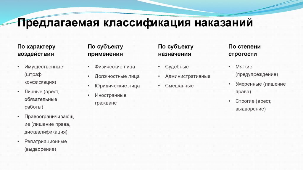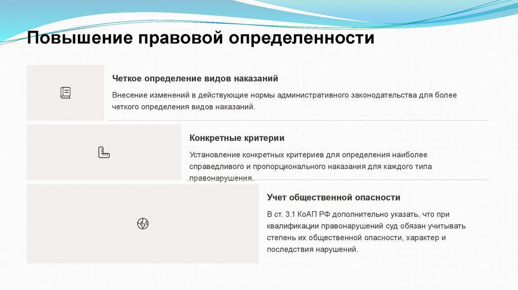 Повышение правовой определенностиЧеткое определение видов наказаний
