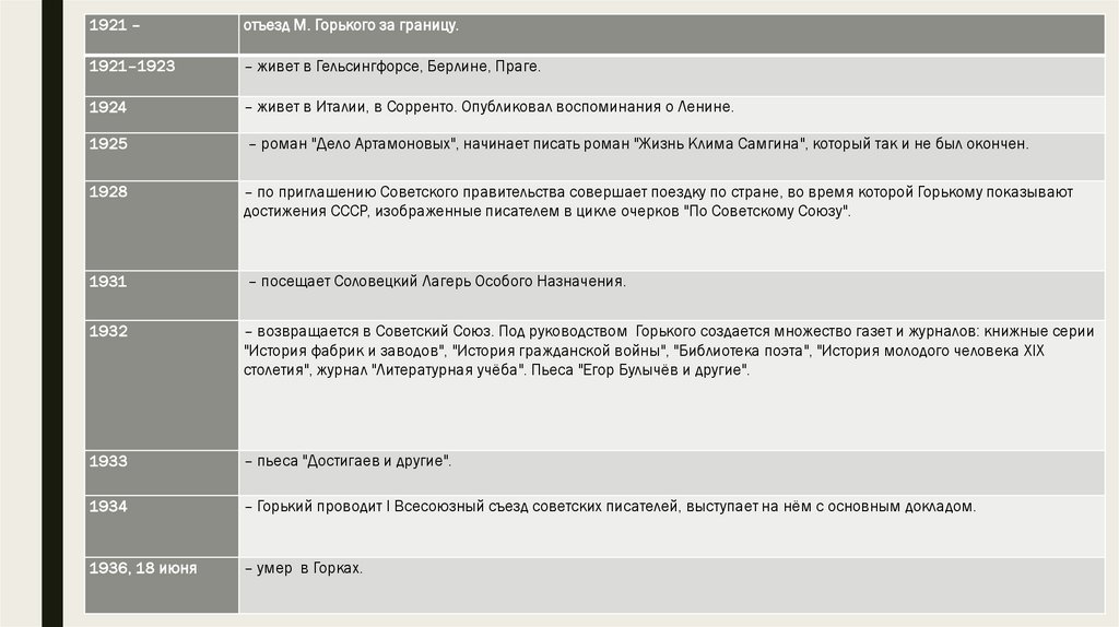 – возвращается в Советский Союз. Под руководством Горького создается множество газет и журналов: книжные серии