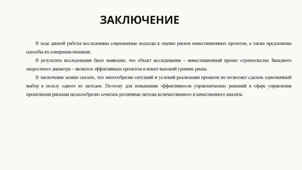 ЗАКЛЮЧЕНИЕВ ходе данной работы исследованы современные подходы к оценке рисков инвестиционных проектов, а также предложены