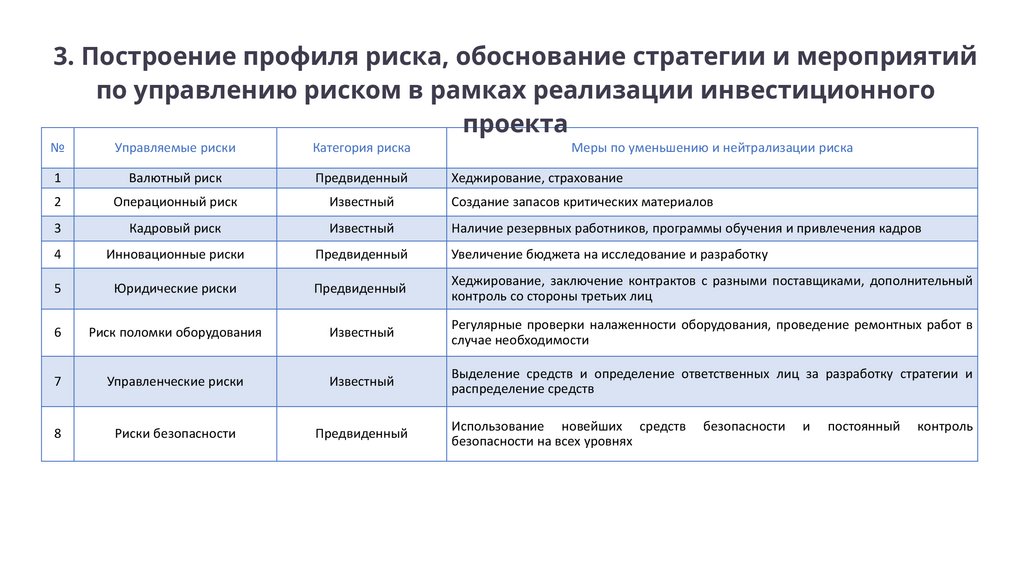3. Построение профиля риска, обоснование стратегии и мероприятийпо управлению риском в рамках реализации инвестиционного