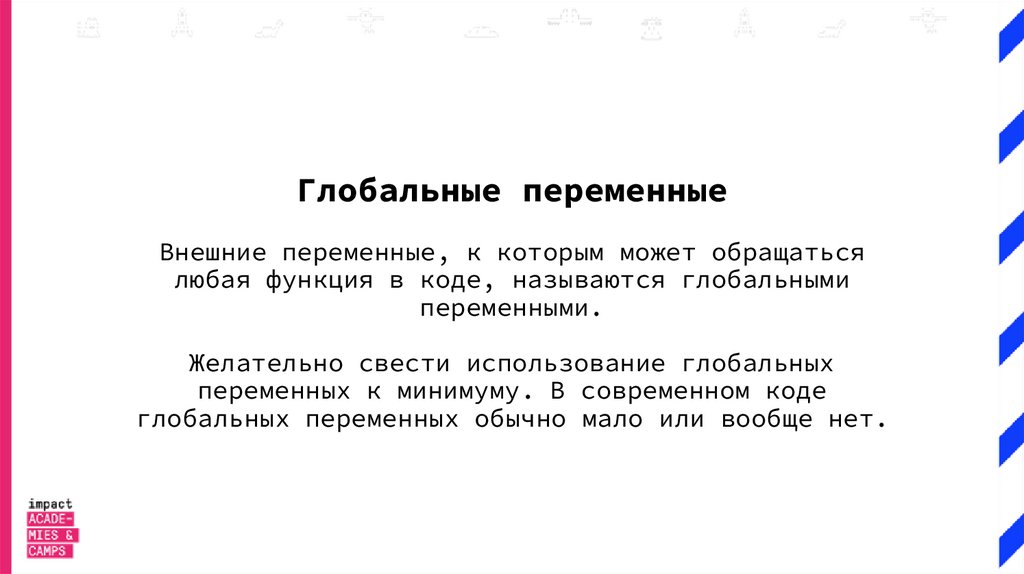 Глобальные переменныеВнешние переменные, к которым может обращаться