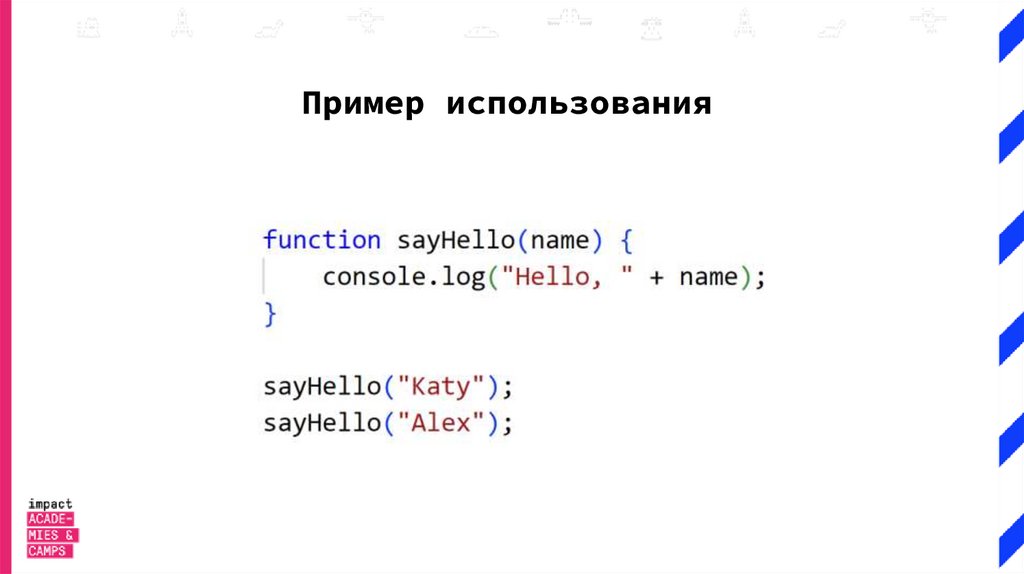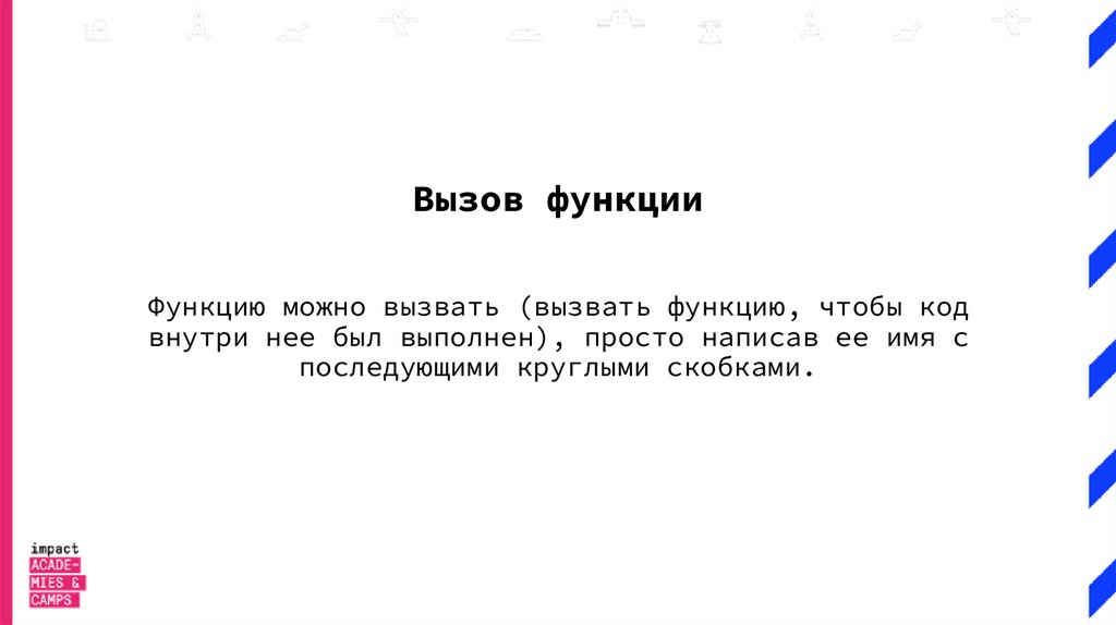 Вызов функцииФункцию можно вызвать (вызвать функцию, чтобы код
