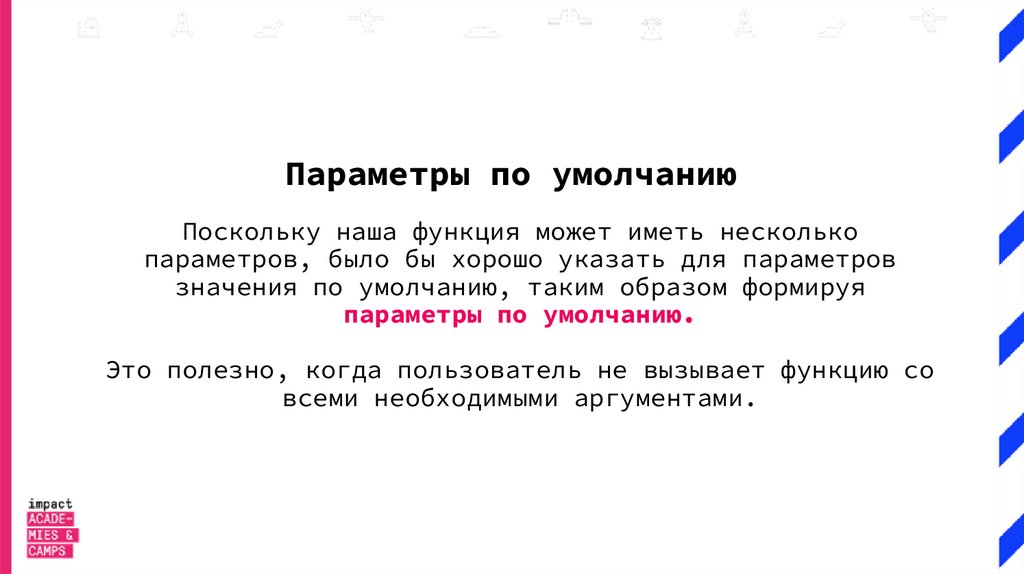 Параметры по умолчаниюПоскольку наша функция может иметь несколько