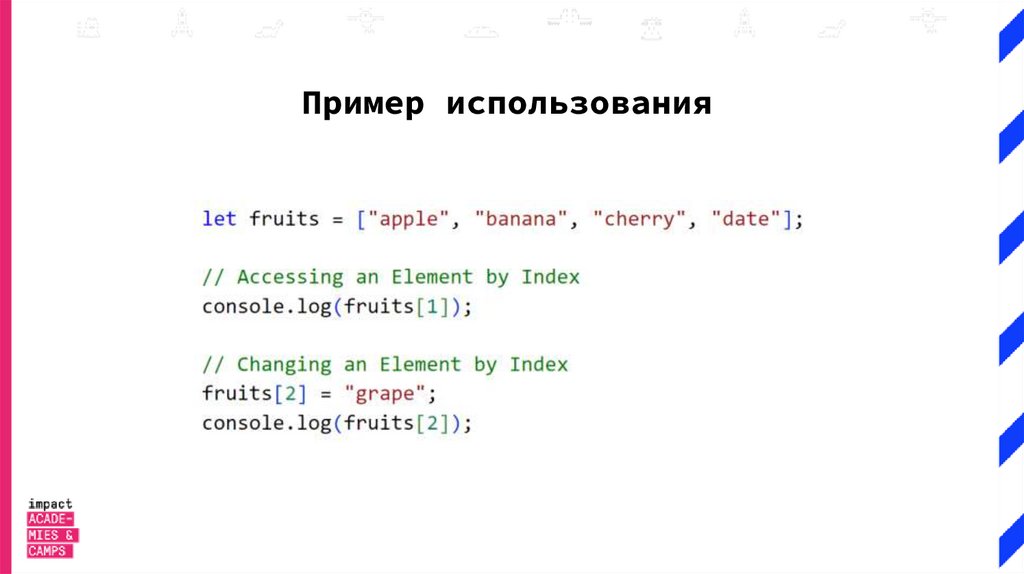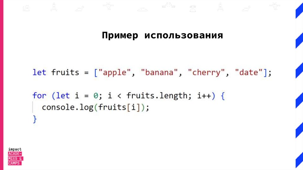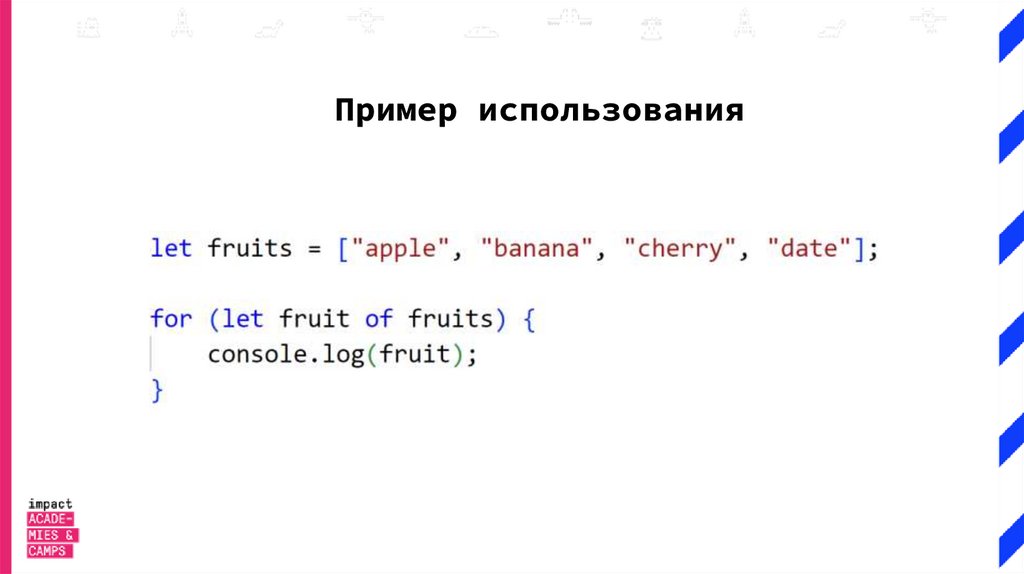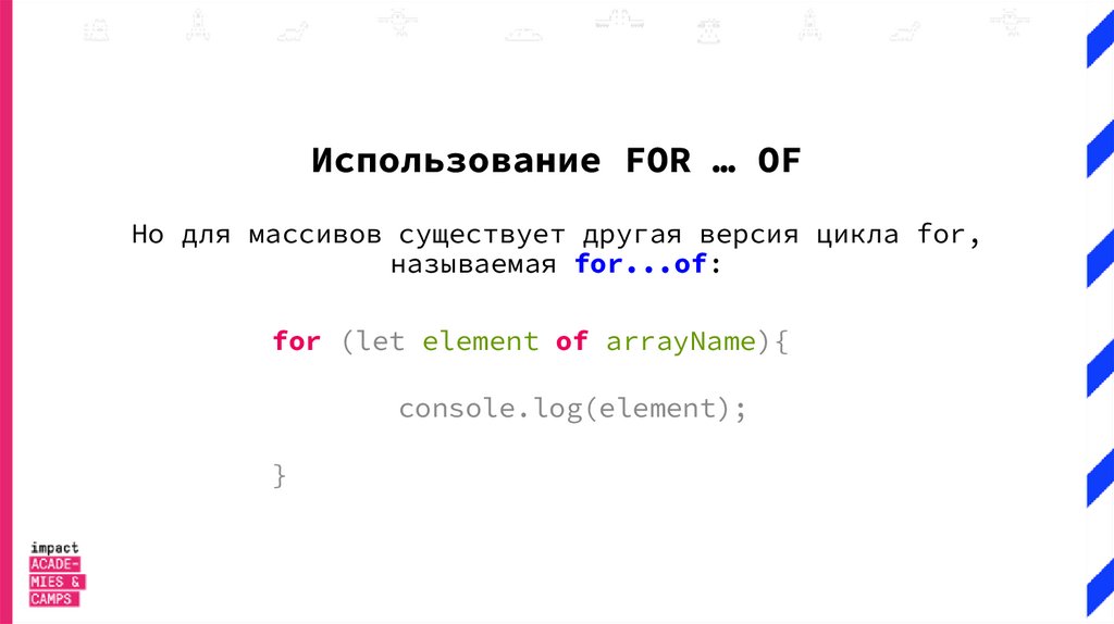 Использование FOR … OFНо для массивов существует другая версия цикла for,