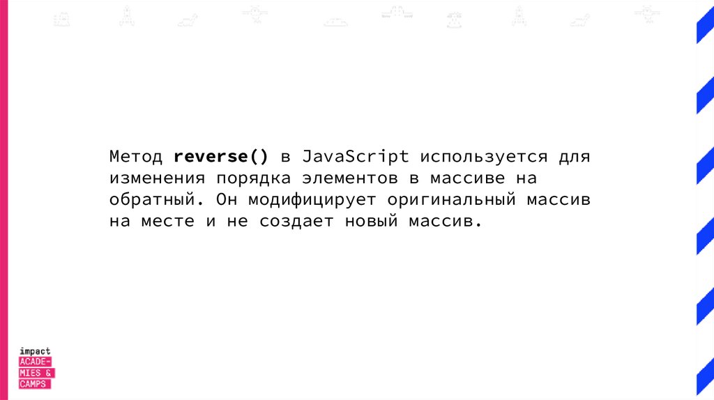 Метод reverse() в JavaScript используется дляизменения порядка элементов в массиве на