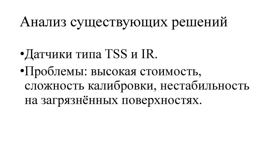 •Датчики типа TSS и IR.•Проблемы: высокая стоимость,