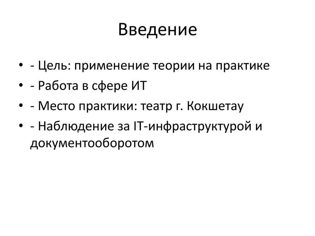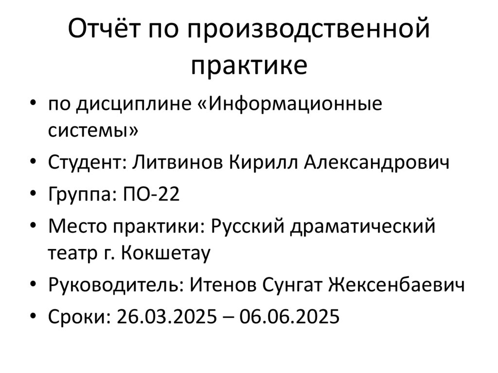 Отчёт по производственной практике в Русском драматическом театре г. Кокшетау