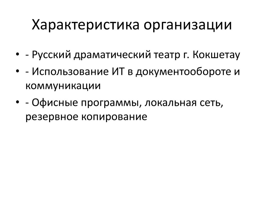 Характеристика организации• - Русский драматический театр г. Кокшетау