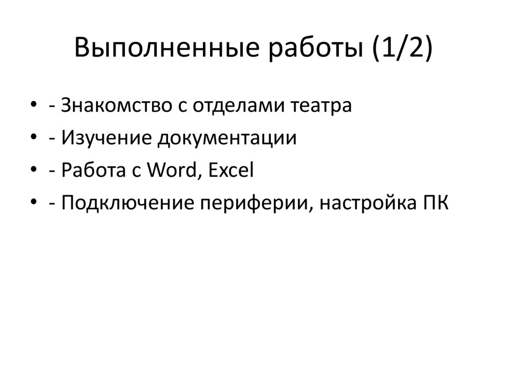 Выполненные работы (1/2)• - Знакомство с отделами театра