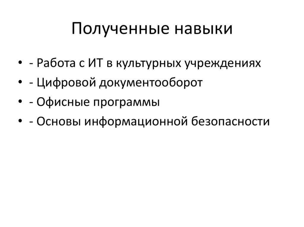 Полученные навыки• - Работа с ИТ в культурных учреждениях