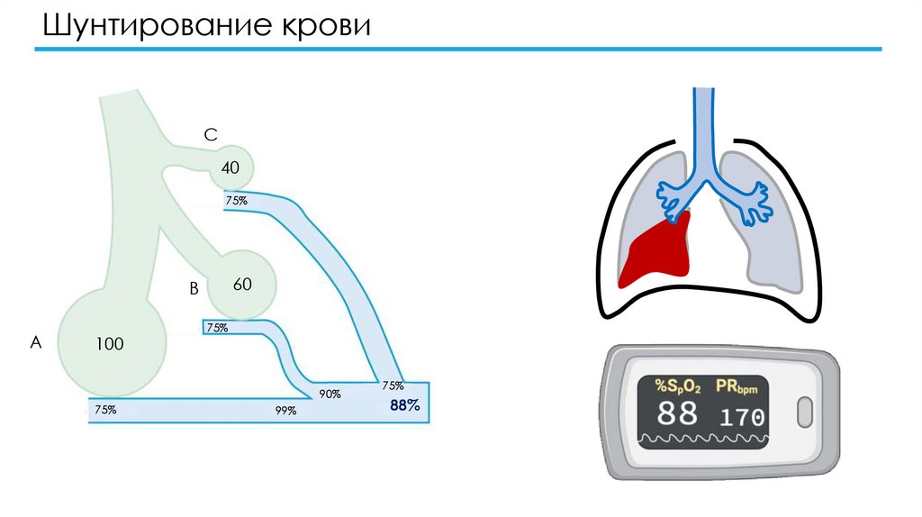 Причина гипоксемии не замедление диффузии а шунтирование крови