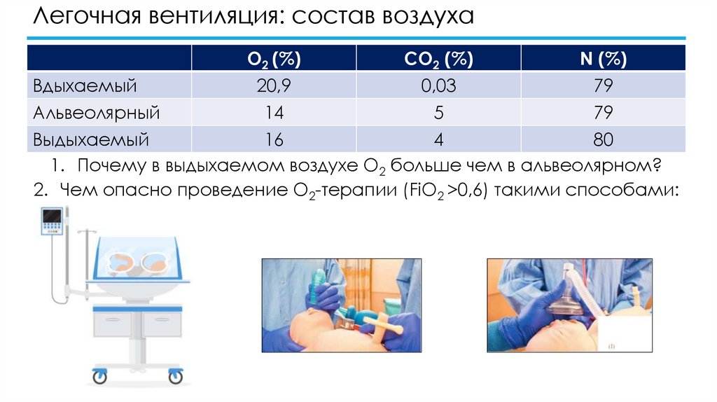 1. Почему в выдыхаемом воздухе О2 больше чем в альвеолярном?