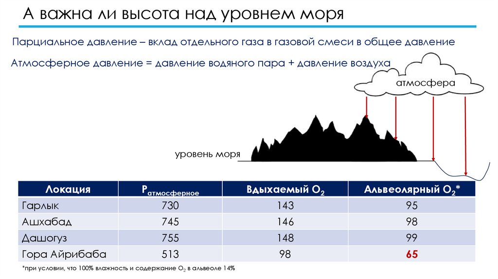 А важна ли высота над уровнем моряПарциальное давление – вклад отдельного газа в газовой смеси в общее давление