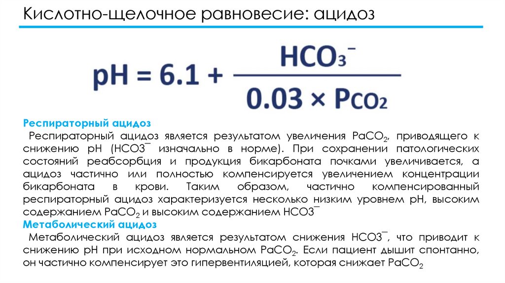 оценить PaCO2. Если это респираторная причина и pH ниже нормы, то PaCO2