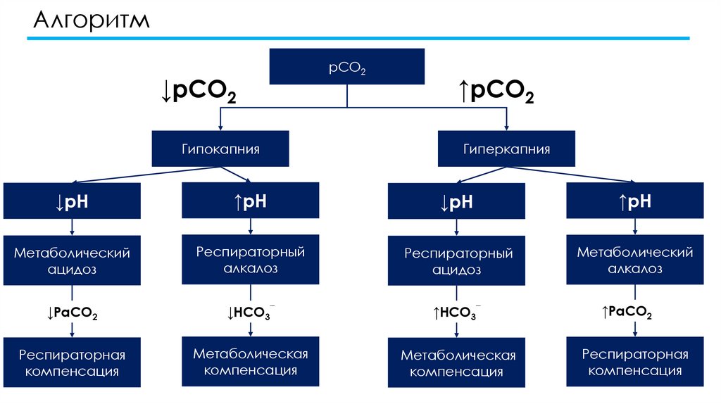 является ли первичная причина респираторной или метаболической. Для этого следует