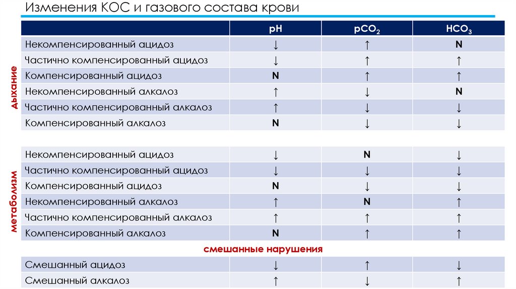 Изменения КОС и газового состава крови