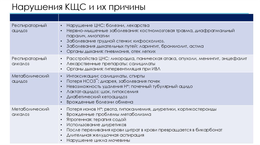Нарушения КЩС и их причиныРеспираторный