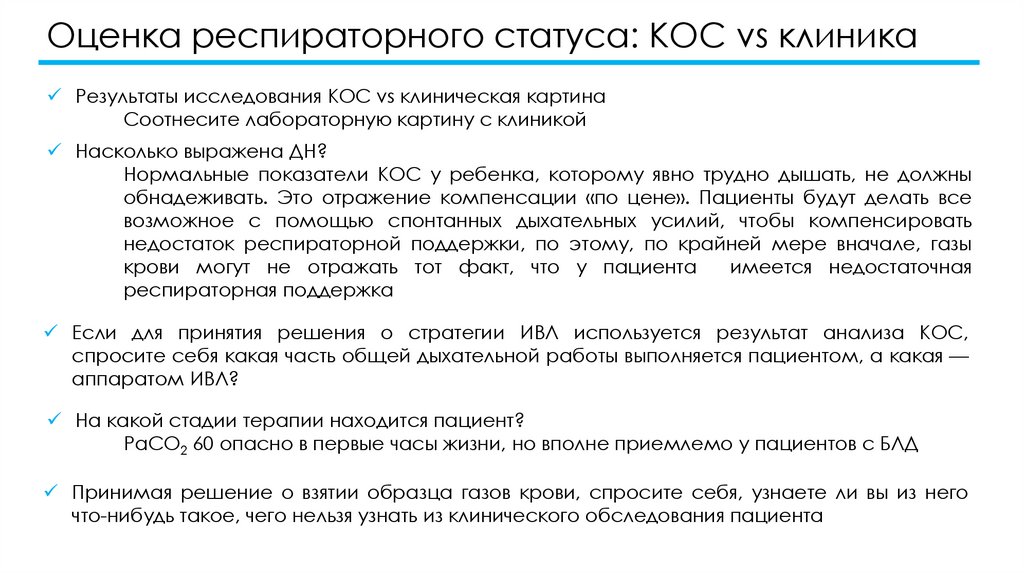 Оценка респираторного статуса: КОС vs клиникаРезультаты исследования КОС vs клиническая картина