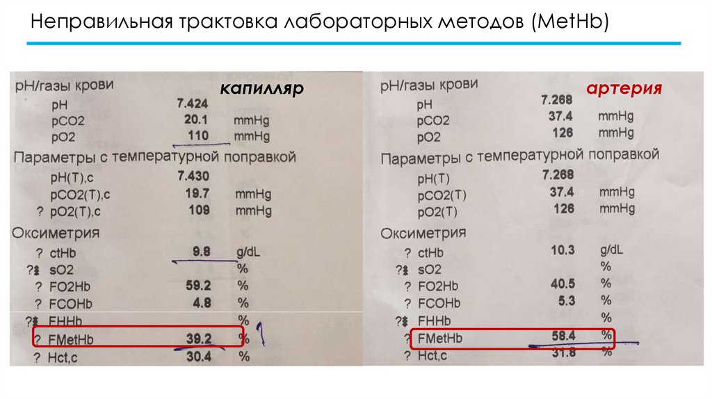 Неправильная трактовка лабораторных методов (MetHb)капилляр