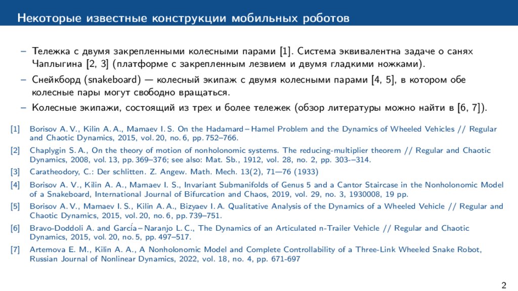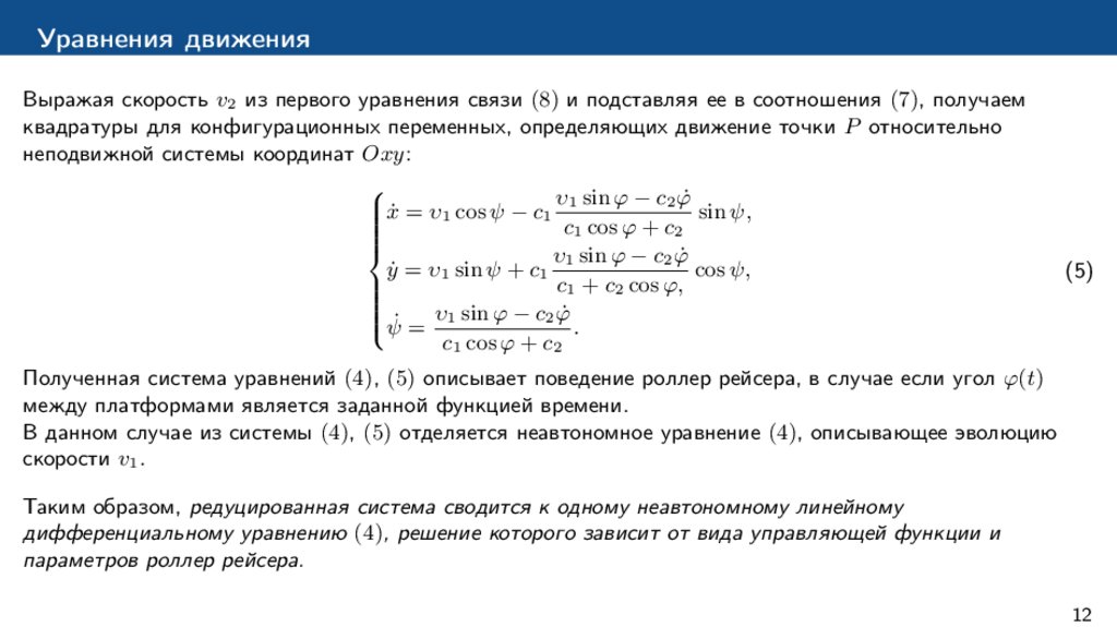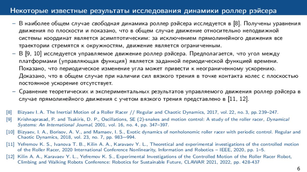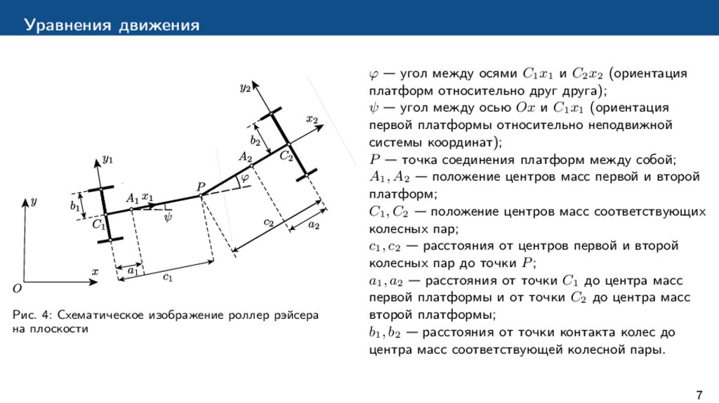 – В [9, 10] исследуется управляемое движение роллер рэйсера. Предполагается, что угол между