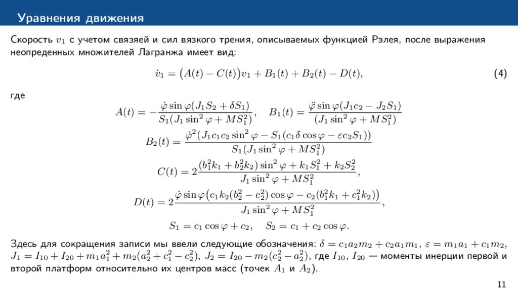 случае прямолинейного движения с учетом вязкого трения представлено в [11, 12].