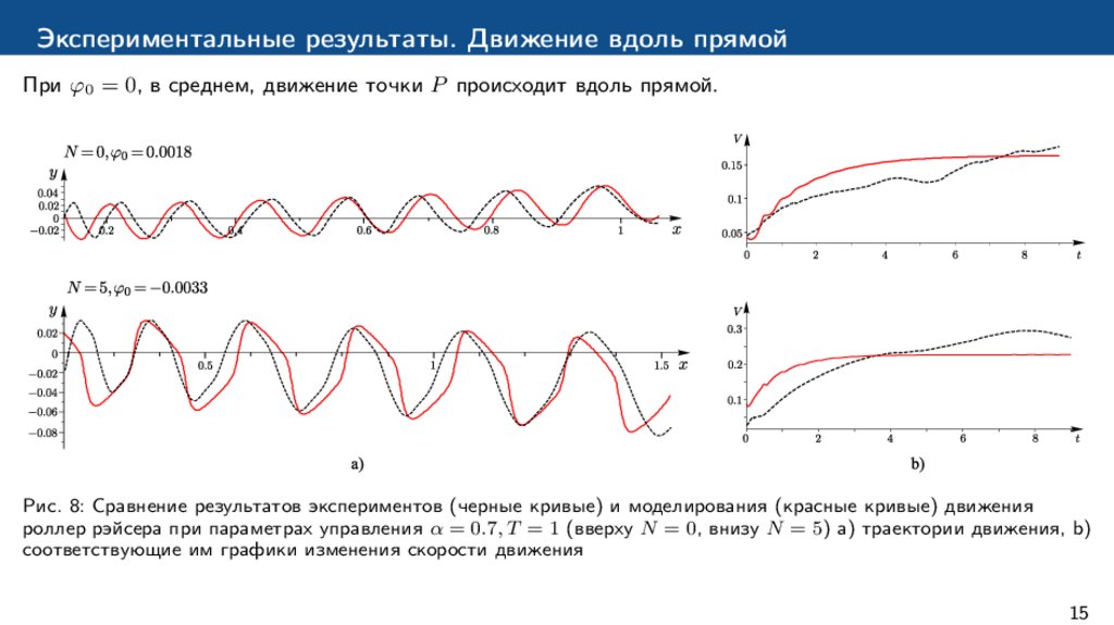 – Сравнение теоретических и экспериментальных результатов управляемого движения роллер рэйсера в