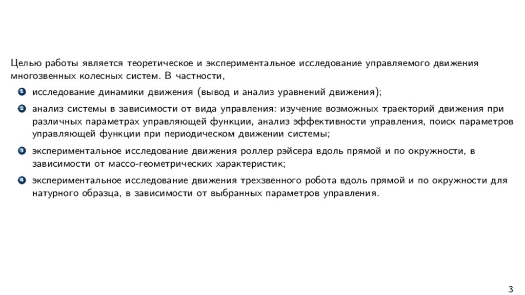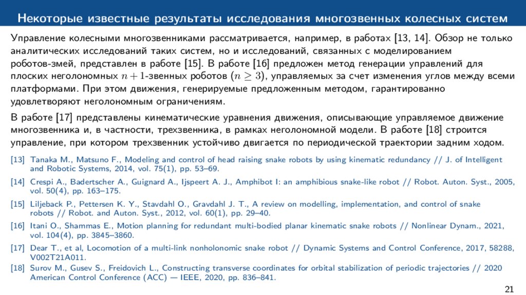 Целью работы является теоретическое и экспериментальное исследование управляемого движениямногозвенных колесных систем. В частности,