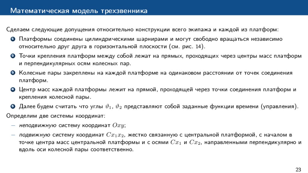 Исследование динамики многозвенных колесных платформ