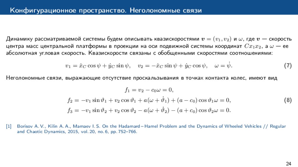 Borisov A. V., Kilin A. A., Mamaev I. S. On the Hadamard – Hamel Problem and the Dynamics of Wheeled Vehicles // Regular