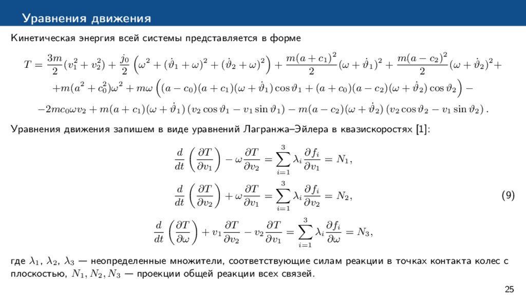 исследование динамики движения (вывод и анализ уравнений движения);