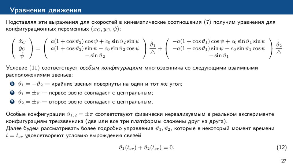 Особые конфигурации ϑ1,2 = ±π соответствуют физически нереализуемым в реальном эксперименте