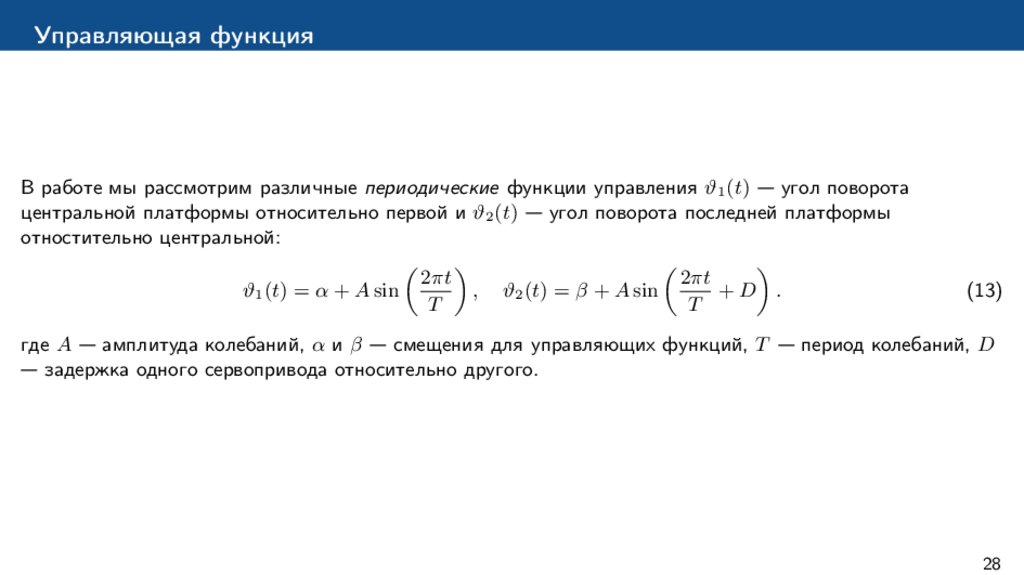 платформами (управляющая функция) является заданной периодической функцией времени.