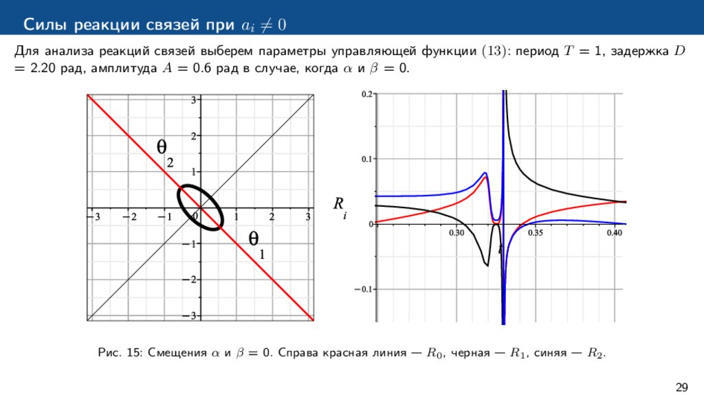 Силы реакции связей при ai ̸= 0Для анализа реакций связей выберем параметры управляющей функции (13): период T = 1, задержка D
