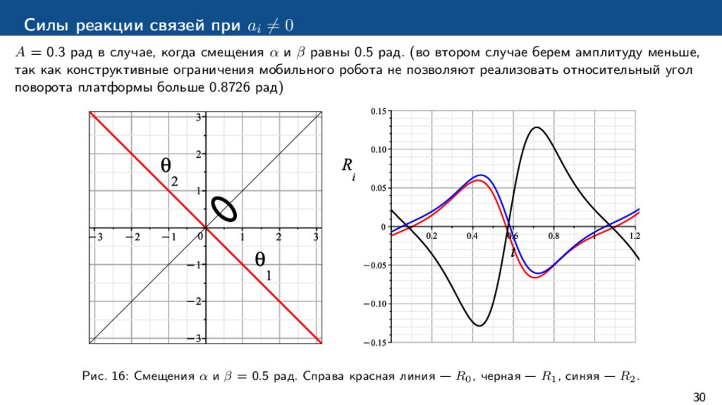 Силы реакции связей при ai ̸= 0A = 0.3 рад в случае, когда смещения α и β равны 0.5 рад. (во втором случае берем амплитуду меньше,